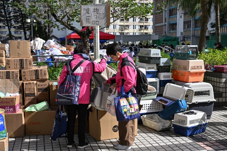 Moradores de Hong Kong organizam, nas ruas, doações para os afetados pelo grande incêndio. Foto: Peter PARKS / AFP