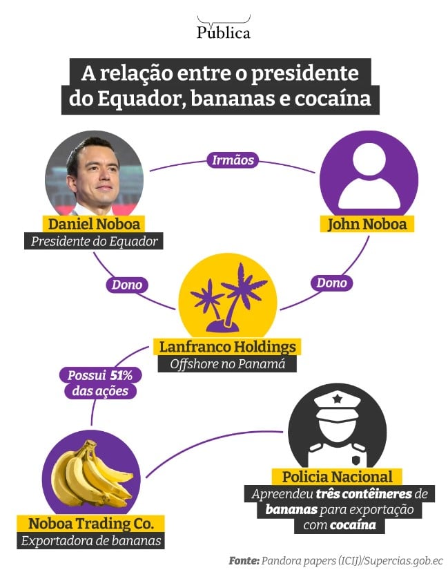 Esse vínculo de Noboa e um de seus irmãos com a Lanfranco Holdings S.A foi revelado com exclusividade na Folha de S.Paulo, às vésperas da eleição de 2023.