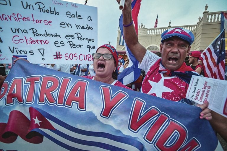 Coluna ereta. Os cubanos protestam contra o assédio da Casa Branca – Imagem: Giorgio Viera/AFP