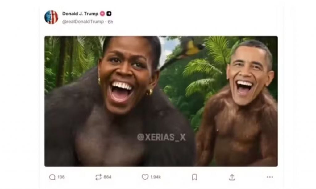 A publicação de uma imagem do ex-presidente Barack Obama e de sua esposa, Michelle, retratados como macacos em uma mensagem do presidente Donald Trump provocou fúria nos Estados Unidos nesta sexta-feira 7 e obrigou a Casa Branca a apagá-la, após atribuir sua divulgação a um “erro”.