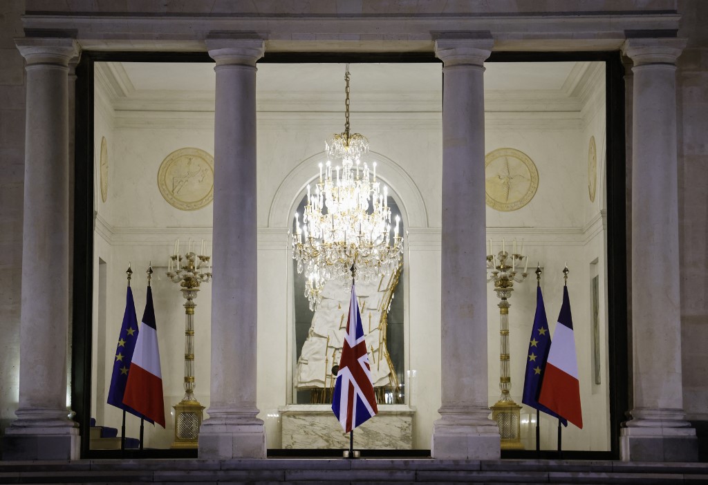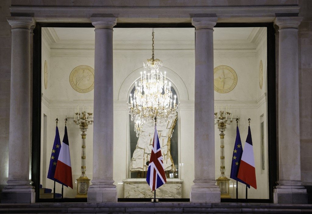 Paris, França: no palácio presidencial, aparece a bandeira britânica: