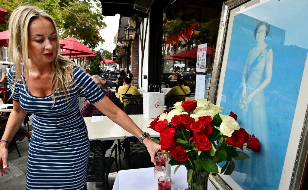 Santa Monica, Estados Unidos: Lisa Powers monta uma exposição de rosas e velas em frente a um pub britânico: