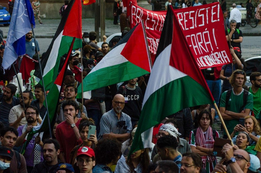 Movimentos populares, coletivos de trabalhadores e representantes de partidos políticos fizeram nesta quinta-feira 19 na Cinelândia, região central do Rio de Janeiro, um ato em defesa dos palestinos. O protesto foi convocado pelo Comitê de Solidariedade à Luta do Povo Palestino.