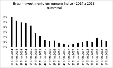 Esses comportamentos são capazes de explicar a situação em que se encontra a economia brasileira. Não são revelados indícios seja de um colapso total, seja de uma recuperação conectada com uma expansão. O que ocorre é que a economia revela a cada trimestre taxas pífias, para cima ou para baixo, de crescimento do PIB e do investimento. Os gráficos mostram a queda acentuada do investimento e do PIB (de 2014 a 2017) e depois evidencia subidas e quedas tênues até os dias de hoje.