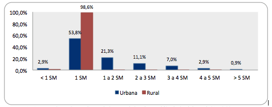 Ao contrário da visão corrente acerca dos “privilegiados”, os valores dos benefícios do RGPS e do BPC são relativamente baixos, próximos do valor do salário mínimo – apenas uma renda básica contra a pobreza. Em 2016, o RGPS concedeu cerca de 20 milhões de benefícios urbanos, dos quais 53,8% tinham valor igual ou menor do que Salário Mínimo; 21,3% dos benefícios ficavam entre um e dois Salários Mínimos; e 11,1% dos benefícios estavam entre dois e três salários mínimos. Portanto, 86,2% dos benefícios do INSS urbano eram iguais ou inferiores a três salários mínimos. No segmento rural, em 2016 foram concedidos cerca de 10 milhões de benefícios, sendo 98,6% equivalentes ao piso do Salário Mínimo (Figura 2). Esses supostos “privilegiados” contribuirão com quase 60% da suposta “economia” proporcionada pela suposta reforma.