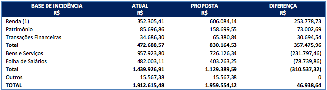 Desses R$ 357 bilhões de receitas potenciais, R$ 157 bilhões seriam obtidos por mudanças no Imposto de Renda da Pessoa Física (IRPF), por meio da revogação das diversas modalidades de isenção das altas rendas combinadas pela implantação de Nova Tabela Progressiva para o IRPF.