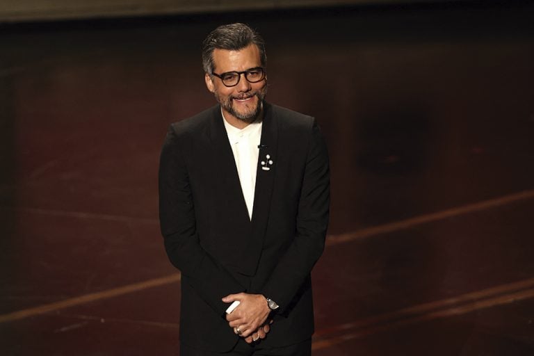 No palco. Wagner Moura foi um dos apresentadores – Imagem: Patrick T. Fallon/AFP