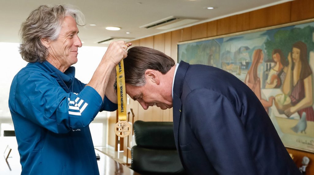 Encontro de Bolsonaro com técnico do Flamengo, Jorge Jesus, em fevereiro. Foto: Marcos Corrêa/PR