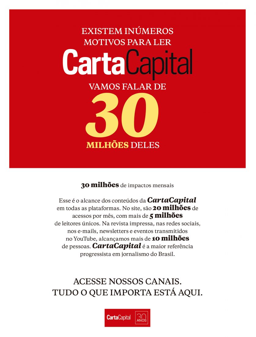 CartaCapital não tem o apoio de bancos e fundações. Sobrevive, unicamente, da venda de anúncios e projetos e das contribuições de seus leitores. E seu apoio, leitor, é cada vez mais fundamental.