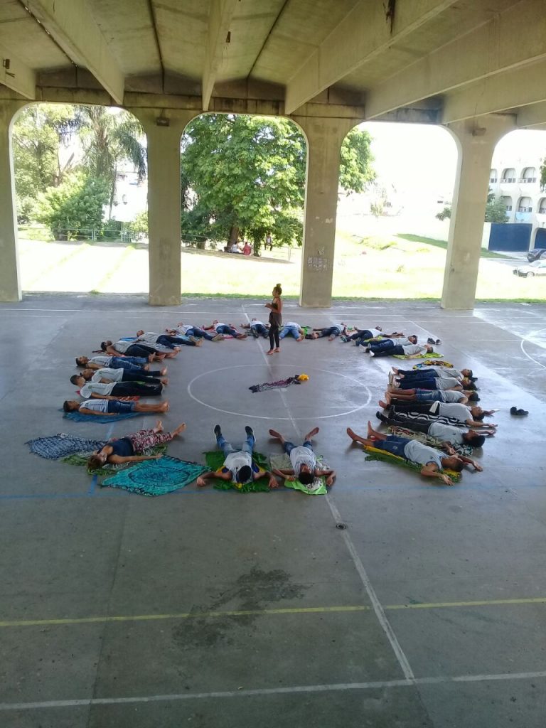 Essa intenção vem se manifestando na prática dentro do território da grande Baixada Fluminense, onde há três anos demos os primeiros passos. No início despretensioso eram apenas aulas gratuitas de yoga para pré-vestibulares sociais de Duque de Caxias e Nova Iguaçu. Não sabíamos da proporção que uma aula de yoga na periferia um dia antes da prova do ENEM poderia ter. E quando as reverberações por meio de depoimentos e aumento da procura por yoga começaram, outros rumos foram estabelecidos.