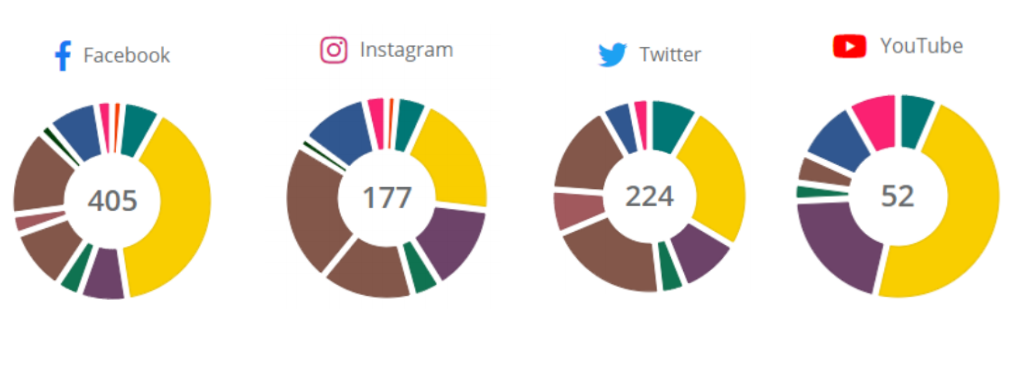 Nos perfis oficiais dos senadores, o termo CPI apareceu em 98 publicações no Facebook, 43 no Instagram, 82 no Twitter e em 23 vídeos no Youtube.