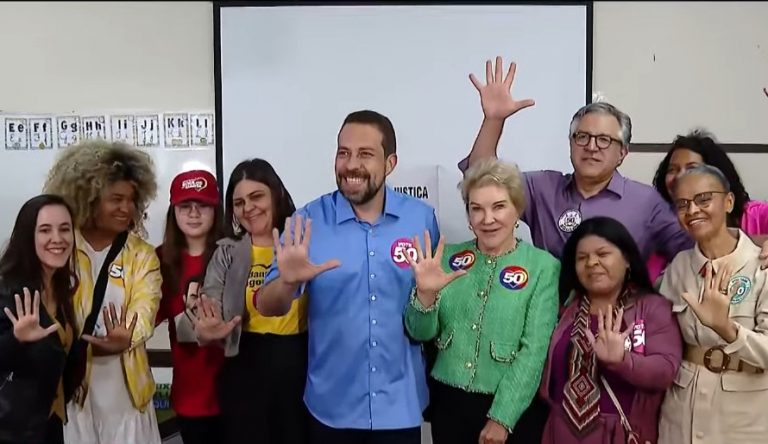 O psolista compareceu ao local de votação acompanhado de familiares; da candidata a vice, Marta Suplicy (PT); e de três integrantes do primeiro escalão do governo federal: as ministras Marina Silva (Meio Ambiente) e Sonia Guajajara (Povos Indígenas) e o ministro Alexandre Padilha (Relações Institucionais).