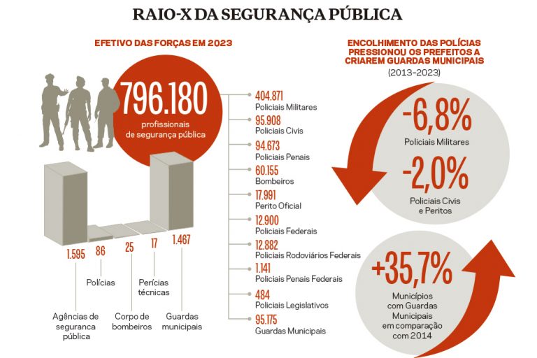 Nos últimos anos, houve forte expansão das Guardas Municipais. O efetivo das PMs diminuiu