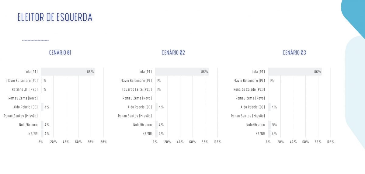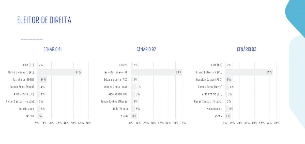 Sem surpresas, Flávio lidera com folga entre eleitores de direita e de centro-direita, enquanto Lula vai ainda melhor na esquerda e na centro-esquerda. Confira os números: