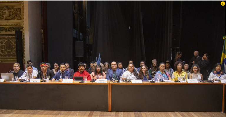 Durante o encontro na Corte Interamericana, representantes de comunidades tradicionais de toda a América Latina apresentaram suas perspectivas sobre seus territórios e questões ambientais. Créditos: Reprodução / Corte IDH