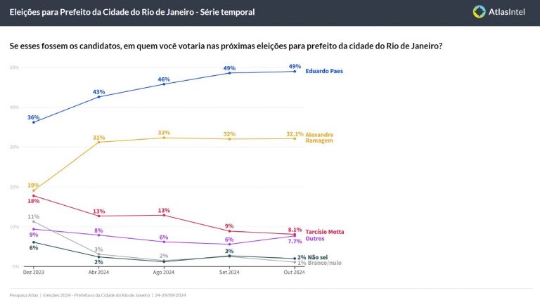 AtlasIntel: Eduardo Paes lidera a corrida pela prefeitura do Rio com quase 50% das intenções de voto