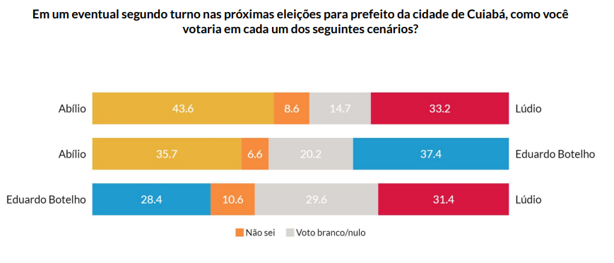 O instituto também testou três cenários de segundo turno na capital de Mato Grosso; veja os resultados