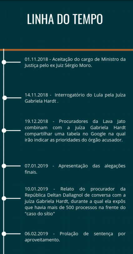 A propósito do caso do sítio de Atibaia, os advogados de Lula resumiram as etapas até a condenação em uma linha do tempo: