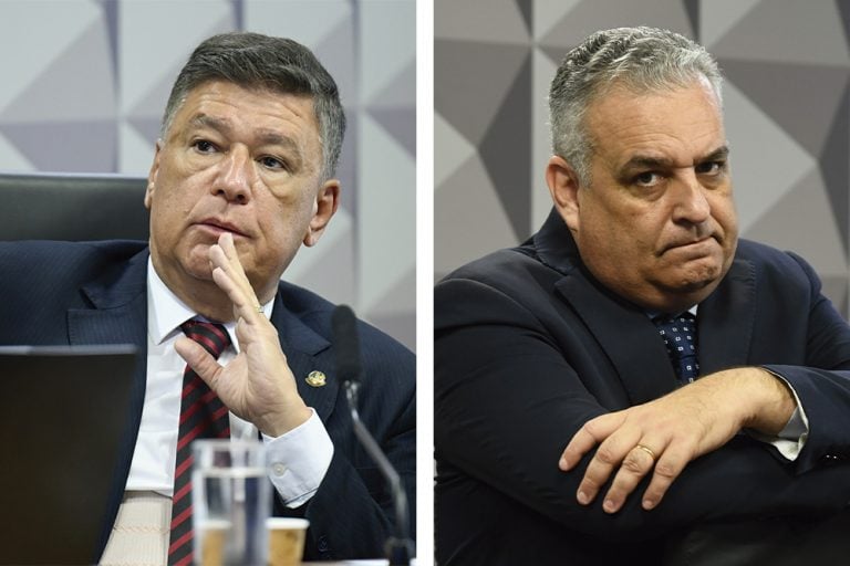 Facciosismo. Viana e Gaspar, presidente e relator da CPI do INSS, manobraram para proteger os amigos e jogar o filho de Lula aos leões – Imagem: Andressa Anholete/Agência Senado e Carlos Moura/Agência Senado