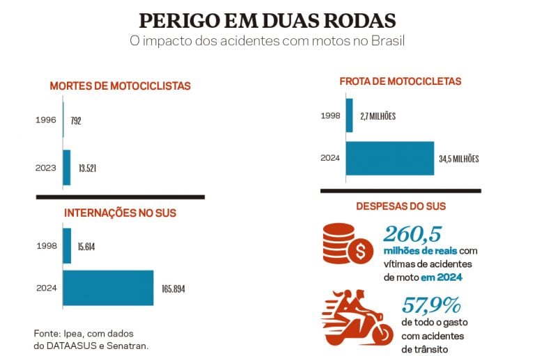 As motos já respondem por 40% das mortes no trânsito brasileiro e sobrecarregam o SUS