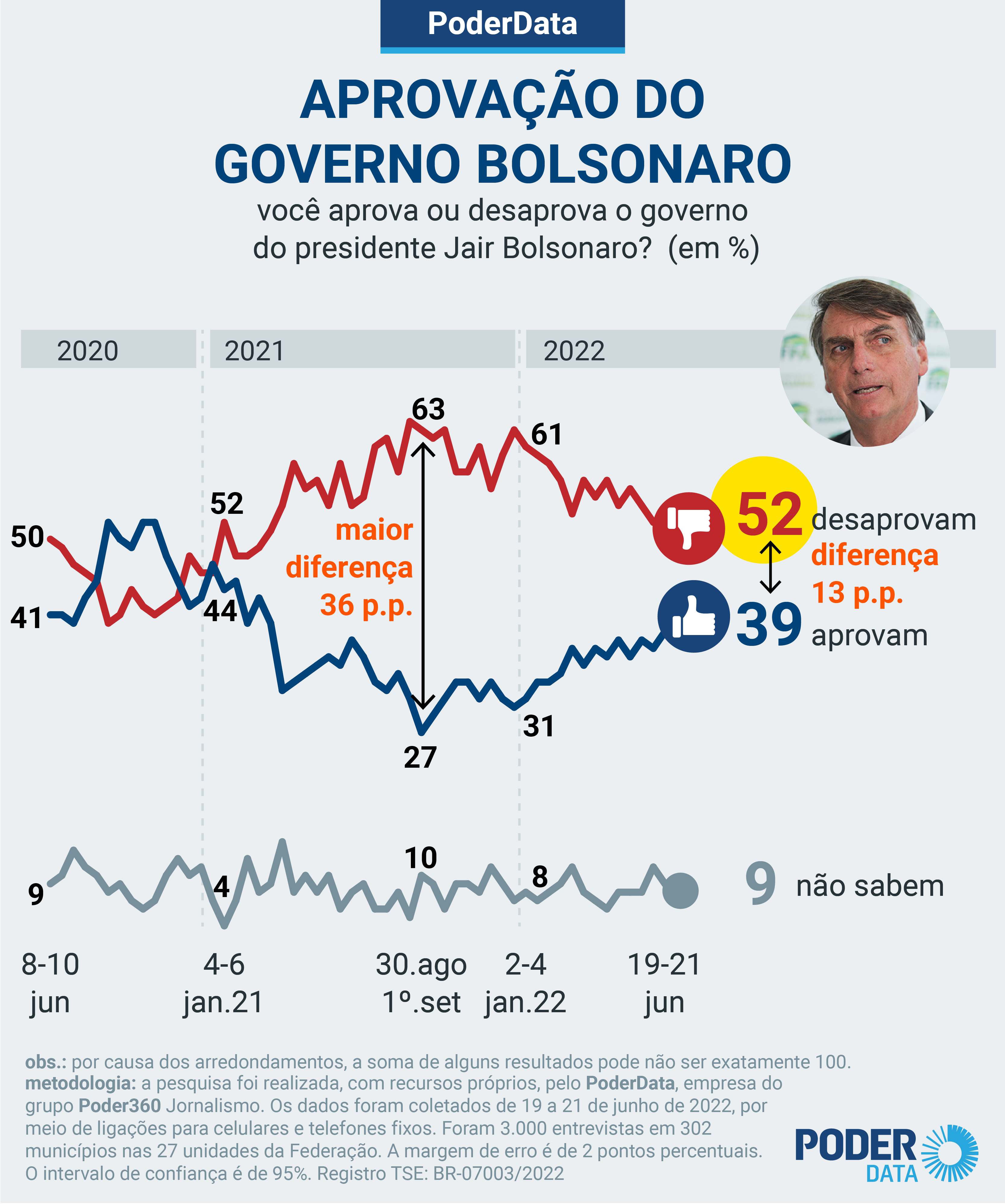 Para chegar aos resultados, o instituto realizou 3 mil entrevistas por telefone entre os dias 19 e 21 de junho, portanto, antes da prisão do ex-ministro da Educação Milton Ribeiro. A margem de erro é de dois pontos percentuais. O intervalo de confiança é de 95%.