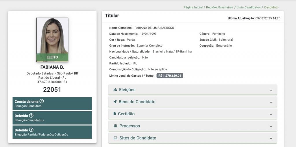 A deputada estadual Fabiana Bolsonaro (PL-SP), que protagonizou um episódio de “blackface” na Assembleia Legislativa de São Paulo para atacar a deputada federal Erika Hilton (PSOL-SP), se autodeclarou parda nas eleições de 2022 e recebeu repasses do Fundo Especial de Financiamento de Campanha.