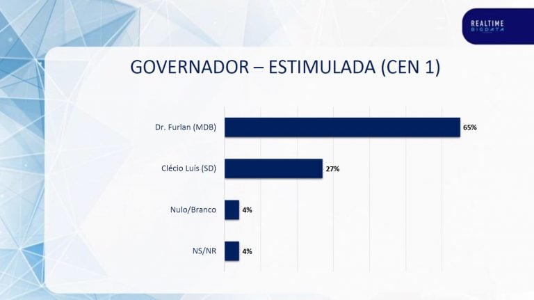 O político aparece com 65% das intenções de voto no único cenário testado pelo instituto. A disputa é travada contra o atual governador Clécio Luís (Solidariedade), que soma apenas 27%.