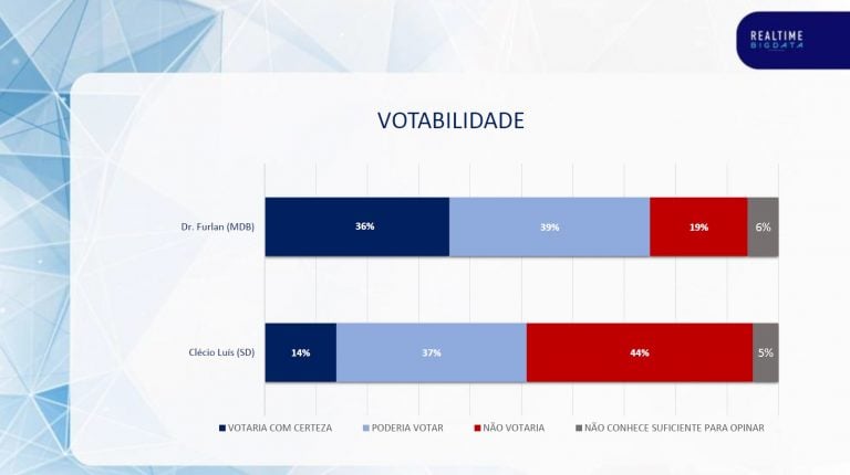 O segundo colocado, por sua vez, registra alta rejeição entre os eleitores do estado, o que justifica, em partes, os resultados obtidos no cenário eleitoral testado. Segundo o instituto, Clécio Luís não seria votado sob nenhuma hipótese por 44% dos eleitores entrevistados. Veja: