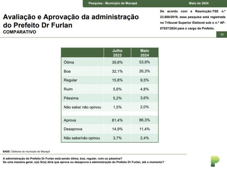 Ao todo, 86,3% dos eleitores de Macapá aprovam o trabalho do emedebista. Só 11,4% desaprovam a atual gestão da capital. Outros 2,4% não souberam ou optaram por não responder.