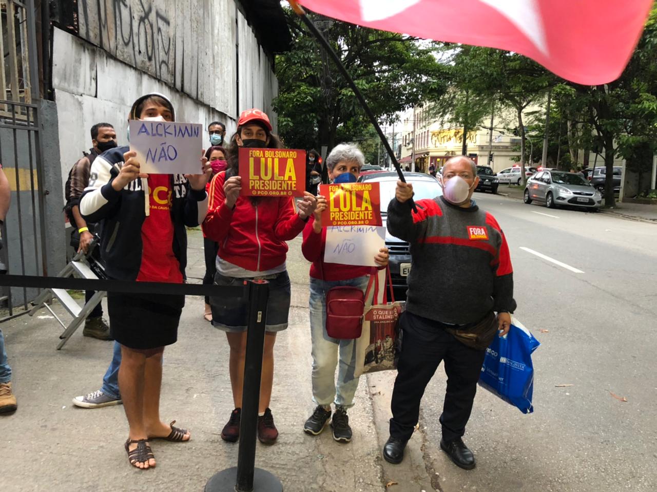 O clima de cordialidade dentro do ambiente contrastou com um pequeno protesto que ocorreu horas antes na portaria do estabelecimento. Militantes do PCO gritaram a favor de Lula e contra o novo possível aliado.