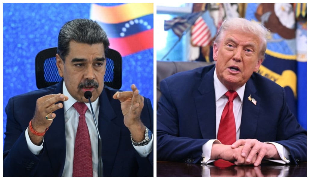 A passagem de caças dos EUA por uma região controlada pela Venezuela gera nova tensão entre Maduro e Trump. Fotos: Federico PARRA / AFP e SAUL LOEB / AFP
