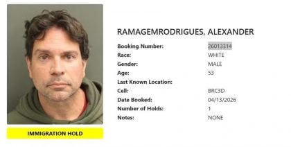 Conhecido como mugshot, o registro aponta que Ramagem está sob custódia por razões ligadas à imigração (“immigration hold“). Não foram incluídas, até o momento, as acusações imputadas pela Justiça brasileira ao ex-diretor da Agência Brasileira de Inteligência. Além das informações de sexo, idade e raça, há a identificação da unidade em que o ex-deputado está detido. Veja: