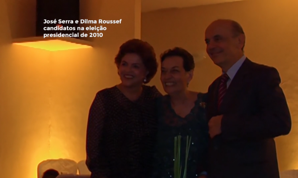 Maria da Conceição Tavares, entre os adversários José Serra (PSDB) e Dilma Rousseff (PT), em 2010. Foto: Reprodução/Documentário ‘Livre Pensar’/TamanduáTV