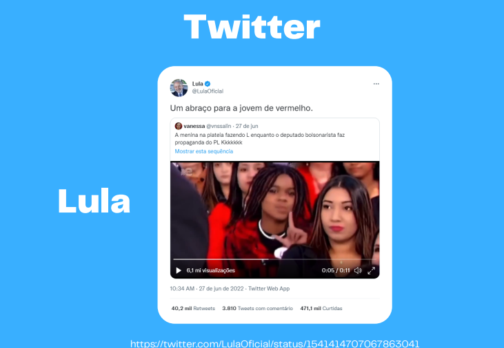 No Twitter, quem mais engajou foi Lula ao reagir a um vídeo em que uma garota faz um ‘L’ durante a gravação do programa de Silvio Santos, no SBT.