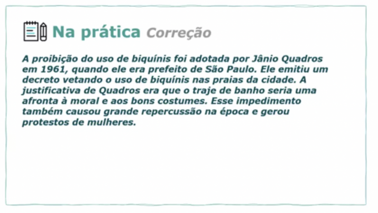 Em outra imagem, de um conteúdo voltado aos estudantes do 9º ano, o material do governo paulista diz que a cidade de São Paulo tem praias. O erro está em uma aula referente à passagem de Jânio Quadros pela prefeitura – entre 1953 e 1955, não em 1961, como alega o slide.