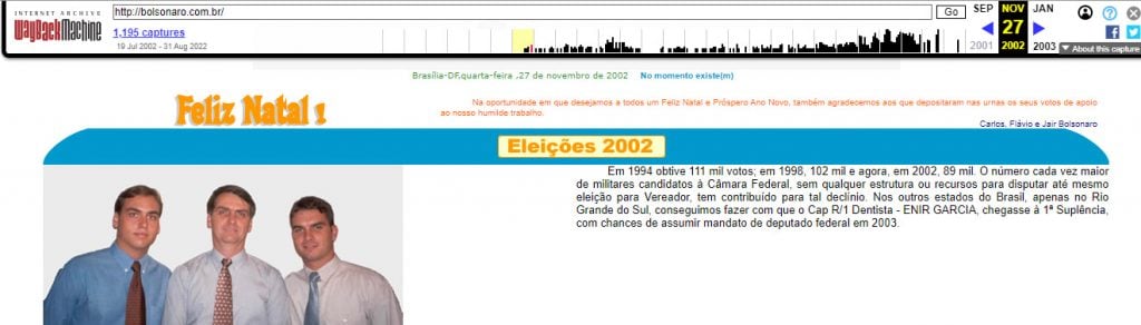 Em 2002, o site já era utilizado para propaganda de Bolsonaro: