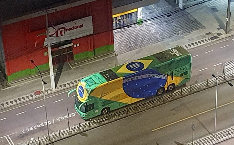A foto do ‘patriota bus’, de Luciano Hang, estacionado em local irregular que gerou uma multa ao empresário. Antes, o bolsonarista já havia parado de forma irregular em frente a um hotel na cidade