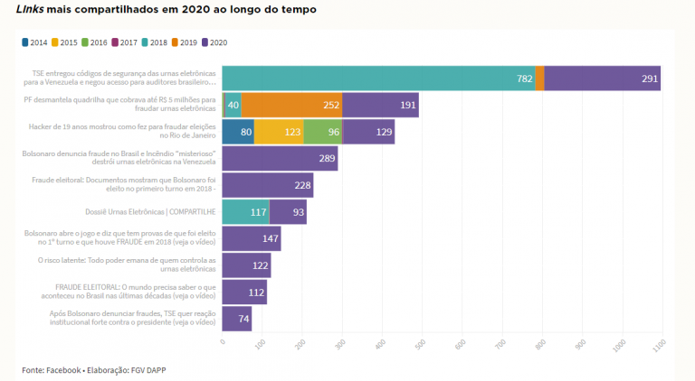 Neste ano de eleições municipais, um dos links mais compartilhados foi uma denúncia do presidente Jair Bolsonaro por suposta fraude nas urnas do Brasil.