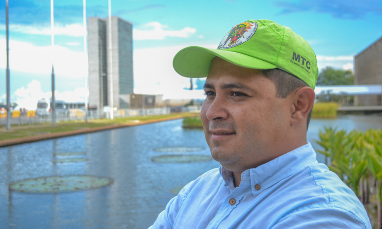 Adriano Ferreira, dirigente nacional do Movimento dos Trabalhadores do Campo, pela primeira vez em uma posse presidencial — Foto: Cecília Ferreira
