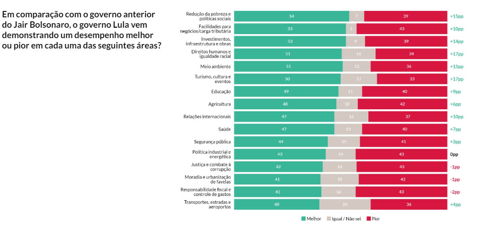 Leia também uma comparação entre os governos Lula e Jair Bolsonaro (PL) por área temática: