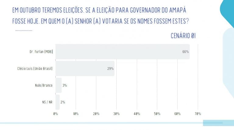 Segundo o levantamento divulgado nesta terça-feira 10, o emedebista tem 66% das intenções de voto na corrida pelo cargo. A segunda colocação fica com o atual governador, Clécio Luís (União), que soma apenas 29% dos votos. Apenas este cenário foi testado. Confira: