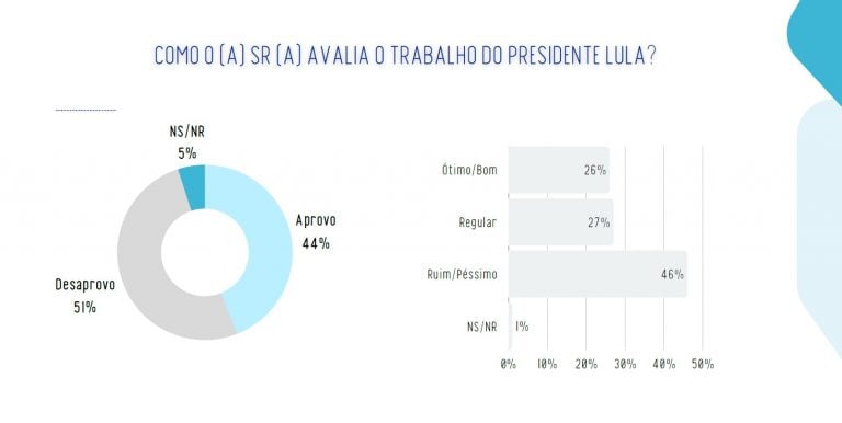 O governo Lula (PT) é aprovado por 44% dos brasileiros e desaprovado por 51%. A conclusão é da nova pesquisa nacional do instituto Real Time Big Data, divulgada nesta terça-feira 3.