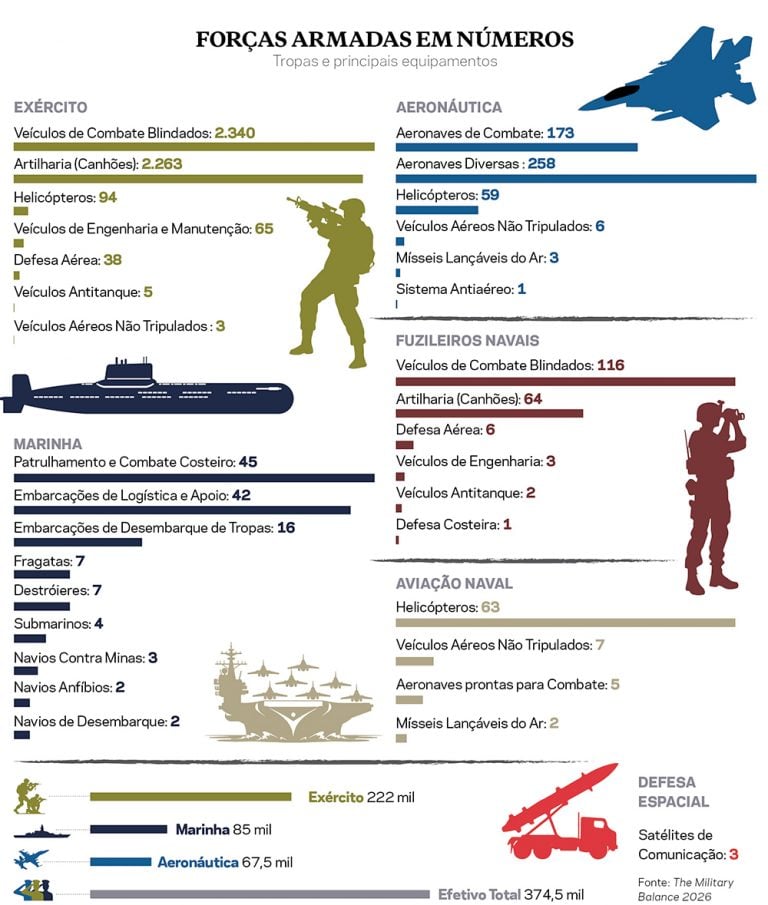 Hoje, o Brasil gasta apenas 1% do PIB em Defesa, menos que vizinhos como Equador e Bolívia