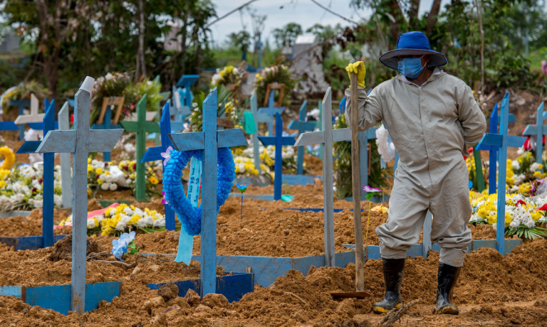 Sepultamentos no cemitério Nossa Sra. Aparecida, em Manaus, capital do Amazonas. Foto: Alex Pazuello/Semcom