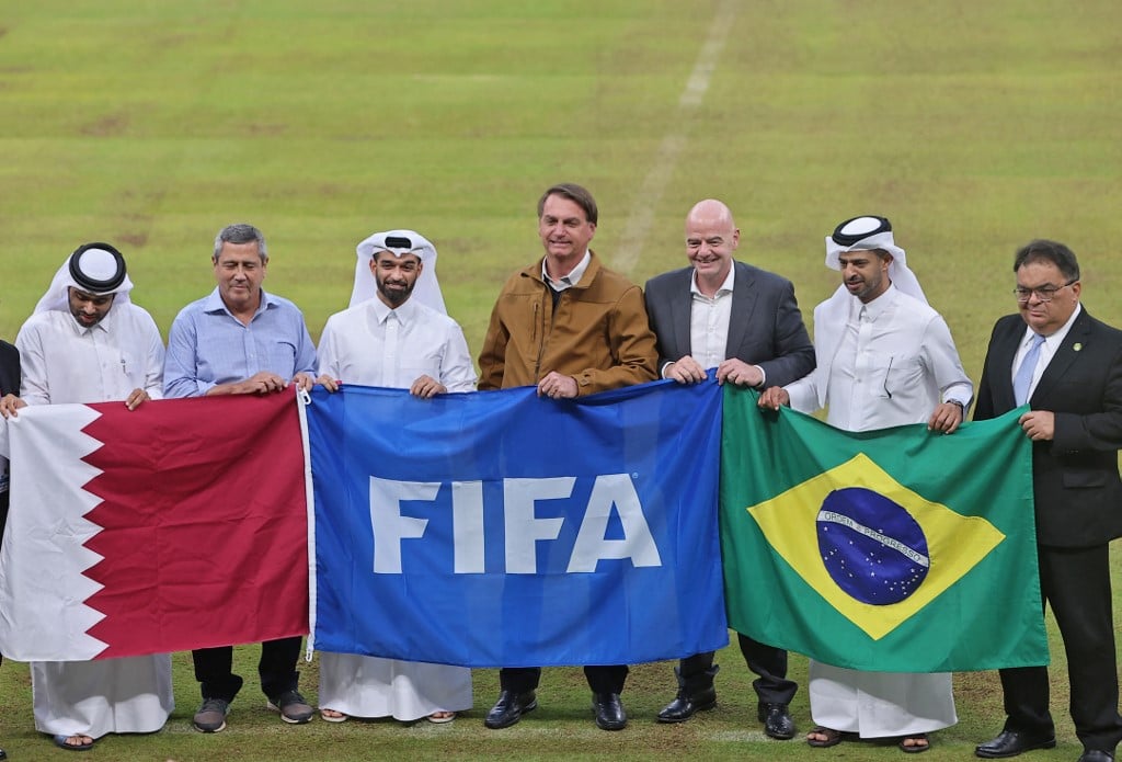 Bolsonaro ao lado do presidente da Fifa Gianni Infantino (Foto: KARIM JAAFAR/AFP)
