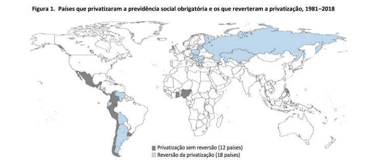 A pesquisa, que durou pouco mais de 3 anos, analisou trinta países que, de 1981 a 2014, privatizaram total ou parcialmente seus sistemas de previdência. Até 2018, dezoito desses países reverteram essa decisão, pois o resultado não foi positivo.