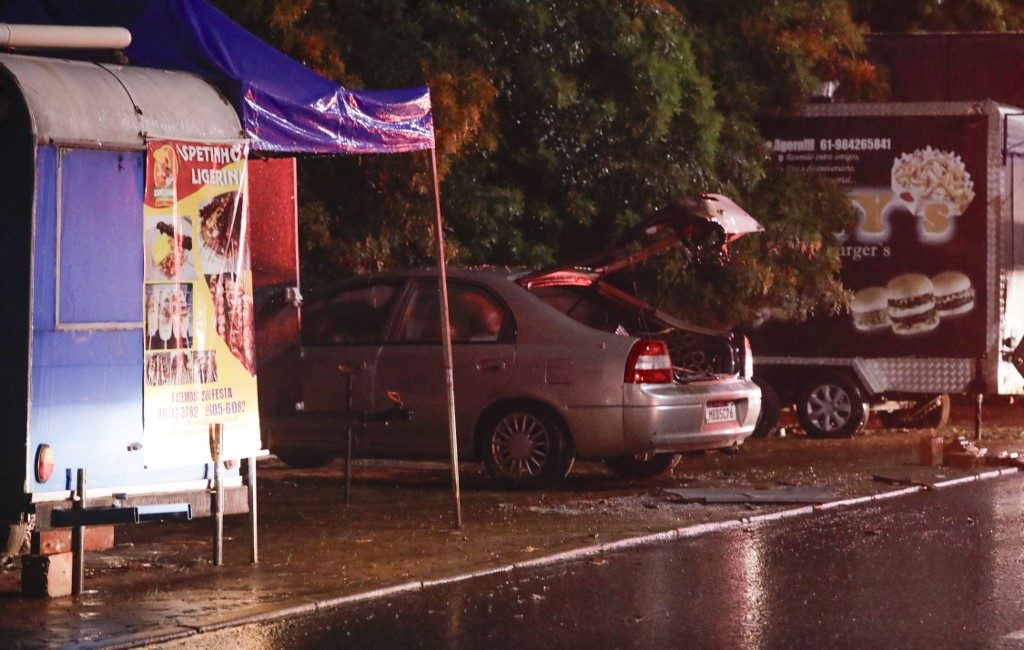 Veículo carregado de fogos de artifício que explodiu no estacionamento do Anexo IV da Câmara dos Deputados. Foto: Sergio Lima/AFP
