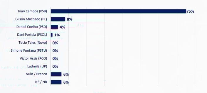 Uma pesquisa Real Time Big Data para a prefeitura do Recife (PE) divulgada nesta segunda-feira 9 reforça o favoritismo de João Campos (PSB) em sua tentativa de reeleição.
