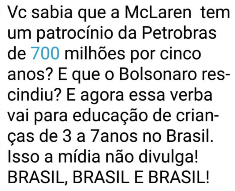 “Onde estava o Coaf quando R$ 317 milhões circularam entre 12 contas do Lulinha?”, questionou um bolsominion. “O filho do Lula mora em um apartamento de 7 milhões de reais, milionário. O Coaf nunca achou nada de irregular, por que será?”, insistiu outro. Sobre Flávio Bolsonaro, silêncio tumular. Já o Lulinha dono da Friboi, esse clássico das fake news comparável apenas à mamadeira de piroca, segue vivinho da Silva. Nos últimos dias, uma foto de Fernando Haddad e sua esposa na porta de um avião sugeria que o petista é o dono da aeronave, adquirida, por óbvio, com dinheiro sujo. A legenda: “Se você enviar para apenas 20 contatos em um minuto… o Brasil inteiro vai desmascarar este Bandido. NÃO quebre essa corrente. Os incautos precisam ser esclarecidos antes que seja tarde demais…”