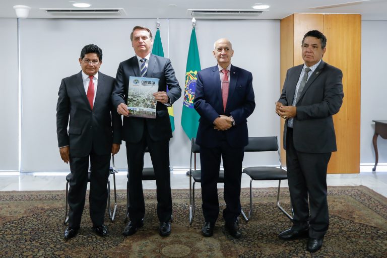 Gilmar Santos e Arilton Moura em evento oficial do governo ao lado de Bolsonaro.